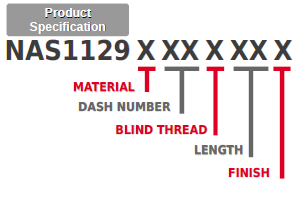 | NAS1129 | C | Corrosion Resistant Steel | 02 | .086-56 UNC | 0.165 | 3/16 (0.187) | 0.101 | 0.040 | 0.171 | B | Blind thread | 4 | 1/8 (0.125) | – | – | P | Cadmium Plated |
