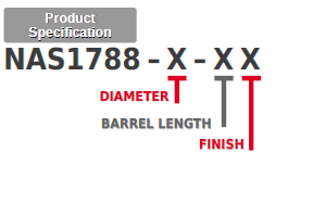 | NAS1788 | 1 | 0.047 | 0.080 | 0.036 | 2-14 | 2/32 (0.062) – 14/32 (0.437) | C | Cadmium Plated |